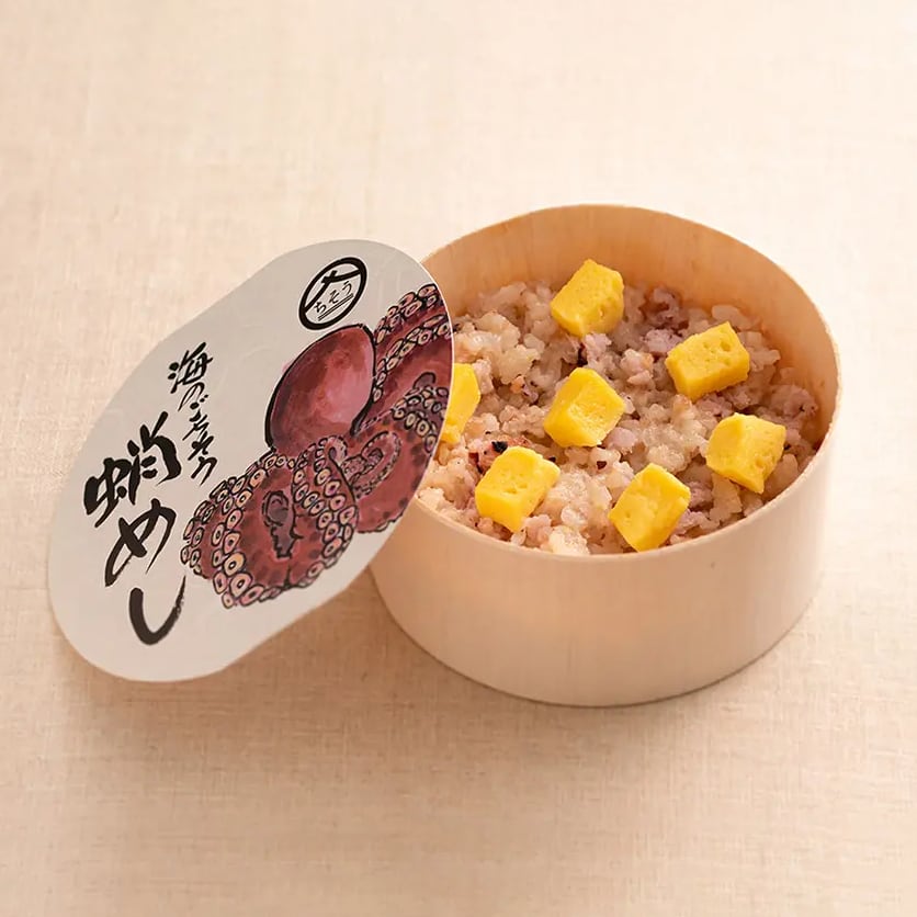 かみにくく、飲み込みにくいゆで蛸を、ゆで汁とともに丁寧にペースト状にして、MCTオイルを加えただしと一緒に風味豊かな釜めし風に炊き上げました。
